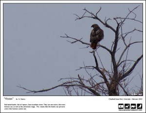 Attempted to drive up to the Rampart Range area with Dan, but turned around due to the snow storm. Spent the rest of the evening at Chatfield, trying our best to get shots of the only subjects readily available, red-tailed hawks in terribly low light. Saw a coyote, some whitetails, and the usual porcupine – all too far away to get decent shots. Another rough winter day…