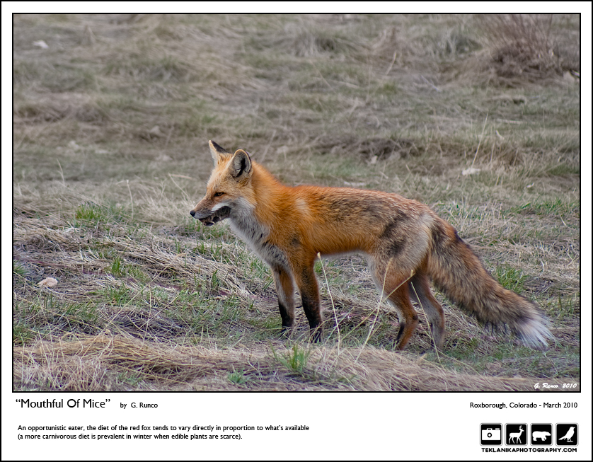 Saw both bald and golden eagles in Roxborough, as well as mule deer, coyotes and a red fox preparing a natal den – hopefully I can get some decent shots of mom and the kits here later this spring.