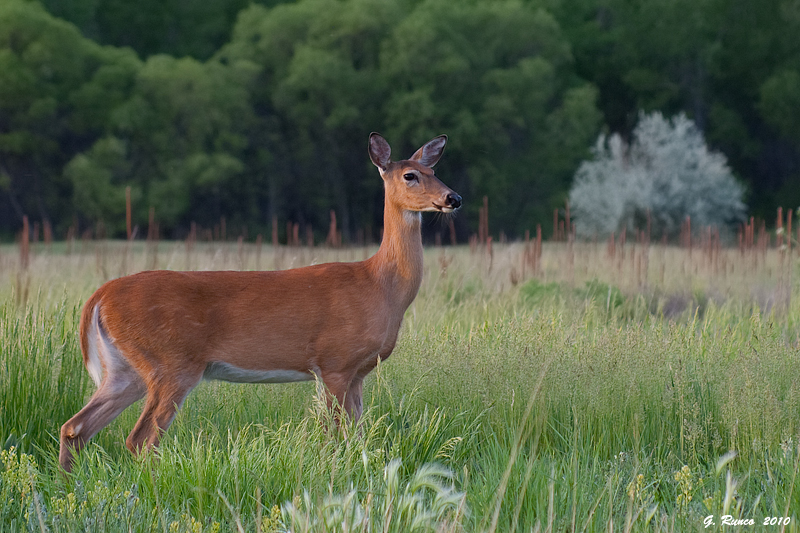 Left the house for some sunset shooting around 5:30. Had Dan or I known that there was a triathlon event going on at Cherry Creek, we probably would’ve gone elsewhere… Anyway, we stuck it out until the race was over, and I’m glad we did. The light was great and the deer really “popped” against the green grass – at the end of the day, we walked away with a few decent shots.