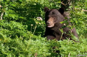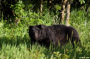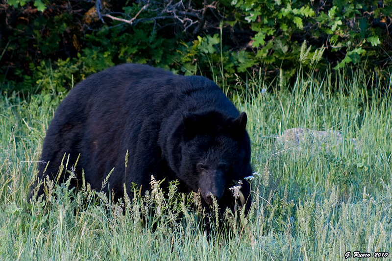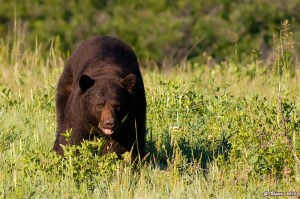 June 16th: Dan and I got into the park later than usual, about 6:30. Not much happening, another hot afternoon. We spent some time with the eaglet, squawking again at the edge of the nest as an adult circled overhead. Rob spotted a bear near the Willow Creek lot, and we were on the trail within shooting distance of the bear within 10 minutes. We spent the evening with the bear, a beautiful black that didn’t seem to mind our presence at all.