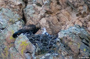 June 14th: Rob, Dan and I arrived at Roxborough around 6:00 PM. The golden eaglet was visible on the edge on the nest, squawking at the top of its little lungs. It wasn’t long before one of the adults showed up, circling above the nest. A small rabbit in the canyon below the nest never saw the eagle coming, and after a couple of minutes dinner was served.