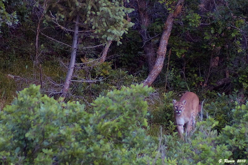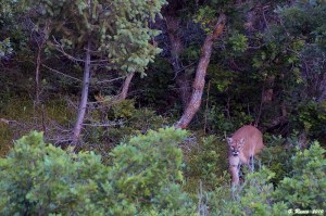 June 15th: Arrived at Roxy around 6, and passed a large group of cub scouts at the visitor center on my way up the Fountain Valley trail. My hike yielded nothing, just too hot for the wildlife to be out. I made my way back to the truck and down to the eagle nest, arriving just in time to see an adult leaving the nest – just missed feeding time. I waited around at the nest for a couple of minutes, and a group of scouts led by a park volunteer came down the road. I did my best to point out the nest, but it’s camouflaged against the cliff and hard to make out without an eagle visible on it. Down the road, and after a half hour of nothing, I found myself back at the upper parking lot. Four deer shot out of the oak brush, heads held high, bleating and scattering as they ran at full speed. I picked up the radio – “Rob, you’d better get over here, something’s got these deer spooked. Definitely a predator.” As soon as I took my thumb off of the receiver a mountain lion walked out of the brush. “Mountain lion, mountain lion, get over here quick!” I was out of the car and shooting in a couple of seconds, and Rob raced into the parking lot. The lion slowly stalked toward us, eyes locked onto the two humans below it the entire time.