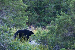 Hiking down the trail, Rob’s voice came over the radio – “I’ve got a bear in the canyon, get down here!”. “I’m on the way, thanks!” – I high-tailed it down to him, just in time to watch the bear disappear into the brush.