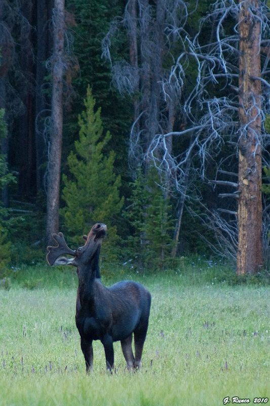 Working in Grand Lake for the Division of Wildlife now, frequent updates will be a bit more difficult to pull off… The past week was excellent – plenty of wildlife and beautiful vistas to be seen in Grand County. I saw my first wild pine marten, spent some time with several moose (mostly bulls, but a couple of cows and calves as well) and elk (again, mostly bulls), and was able to focus on many of the osprey nesting around the lakes in the area. Looking forward to spending the next couple of days at Roxy and Chatty, hoping for new bear and coyote shots.