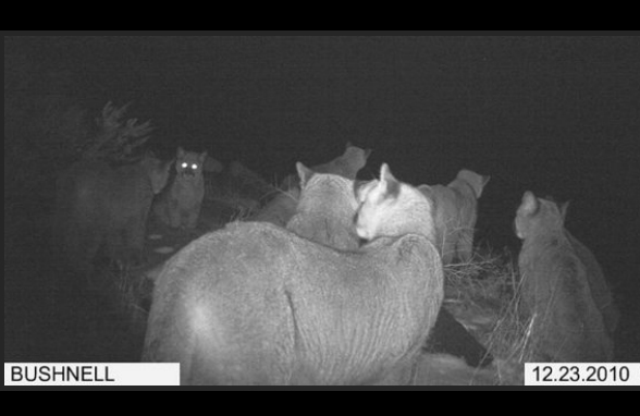 The black and white trail-cam image, which shows EIGHT cougars in one spot, has gone viral in Northwest websites and e-mail lists since he first released it to acquaintances on Christmas Day.