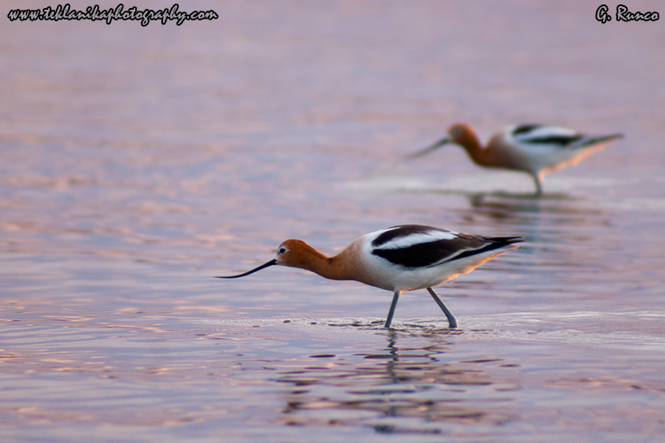 “Wading Avocets” © Teklanika Photography 2010 A pair of American avocets in summer plumage wade along the shore of a Colorado lake. “Wading Avocets” Cherry Creek State Park, Colorado 04/18/2010 Sony A200 Sony 75-300mm lens @ 280mm 1/160 sec @ f5.6 iso 400 © Teklanika Photography 2010
