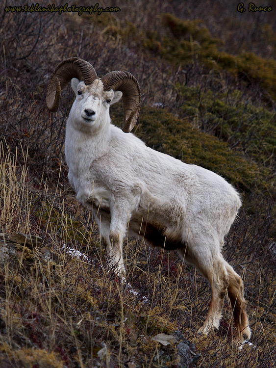 “Late Winter Ram” © Teklanika Photography 2013 “Late Winter Ram” Winter weather is the main factor that affects Dall sheep numbers. Dall Sheep (Ovis dalli) Chugach State Park, Alaska 03/03/2013 Canon 7D Canon 100-400mm lens @ 250mm 1/500 sec @ f5 iso 400 © Teklanika Photography 2013