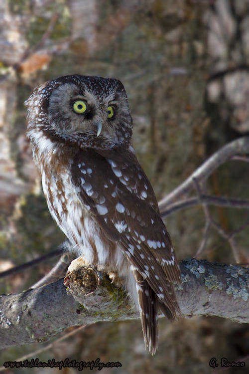 A small owl of boreal and montane forests, the boreal owl is found throughout Alaska.
