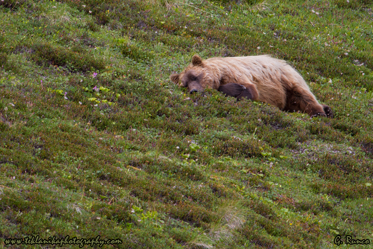 “Don’t Wake a Sleeping Bear” © Teklanika Photography 2013 “Don’t Wake a Sleeping Bear” Grizzly Bear (Ursus arctos horribilis) Denali National Park, Alaska 07/24/2013 Canon 7D Canon 100-400mm lens @ 400mm 1/400 sec @ f5.6 iso 200 © Teklanika Photography 2013