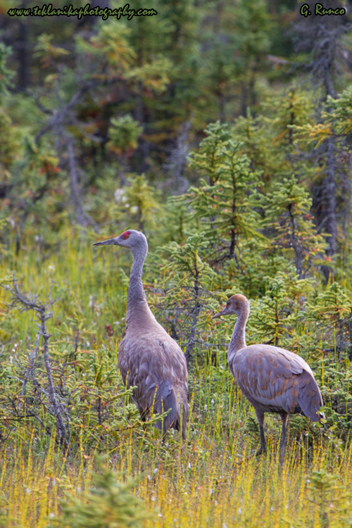 “Cranes in the Forest” © Teklanika Photography 2013 Lesser Sandhill Cranes (Grus canadensis canadensis) Anchorage, Alaska 09/01/2013 Canon 7D Canon 100-400mm lens @ 400mm 1/400 sec @ f5.6 iso 500 © Teklanika Photography 2013