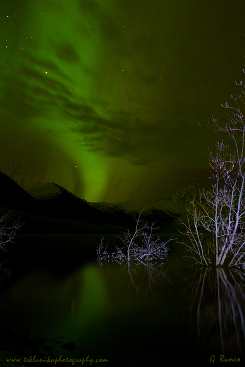 “Eklutna Lake Lights” © Teklanika Photography 2013 Aurora Borealis or Northern Lights Canon 7D Canon 17-40mm lens @ 17mm 25 sec @ f4 iso 640 © Teklanika Photography 2013