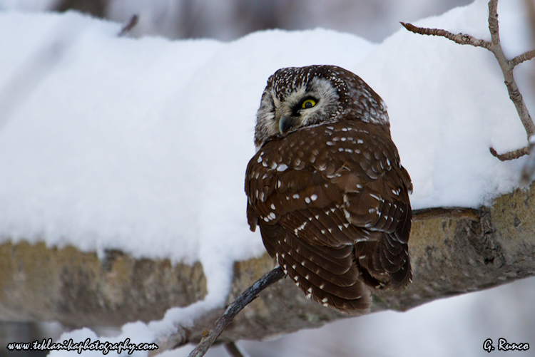 “Winter Boreal Owl” © Teklanika Photography 2013 Boreal Owl (Aegolius funereus) Kincaid Park, Anchorage, Alaska Canon 7D Canon 100-400mm lens @ 400mm 1/160 sec @ f5.6 iso 400 © Teklanika Photography 2013