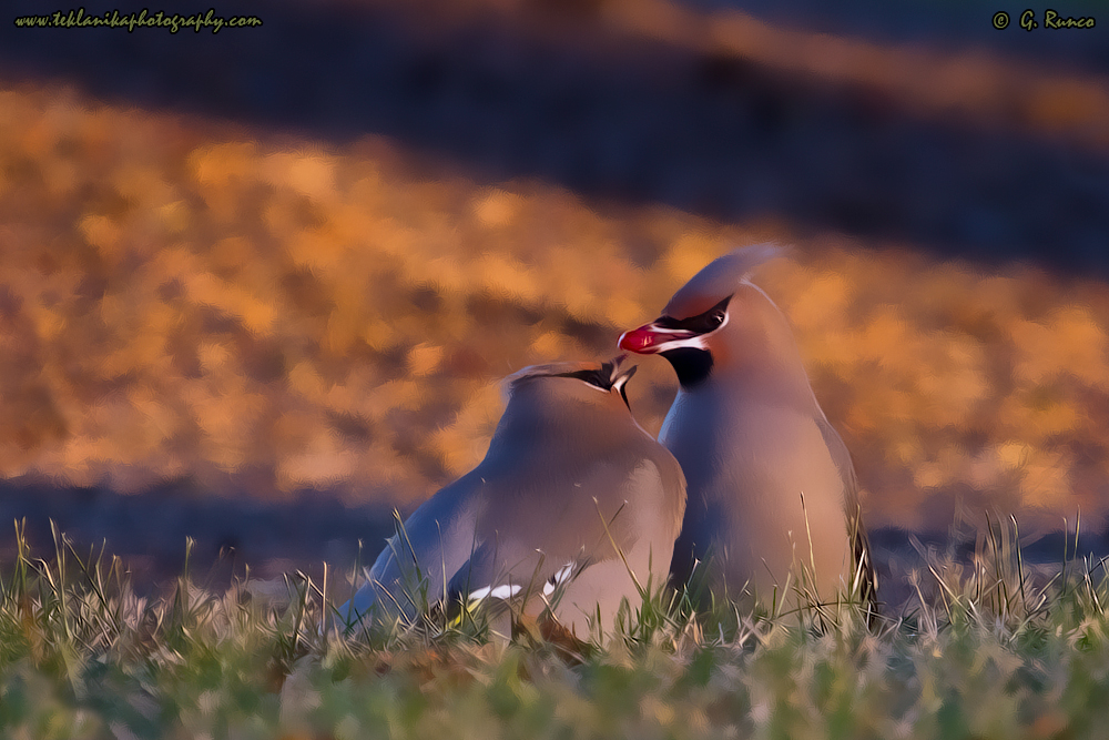 “Always Share Your Berries” © Teklanika Photography 2015 Bohemian Waxwings (Bombycilla garrulus) Anchorage, Alaska Canon 7D Canon 100-400mm lens @ 400mm 1/40 sec @ f5.6 iso 200 © Teklanika Photography 2015