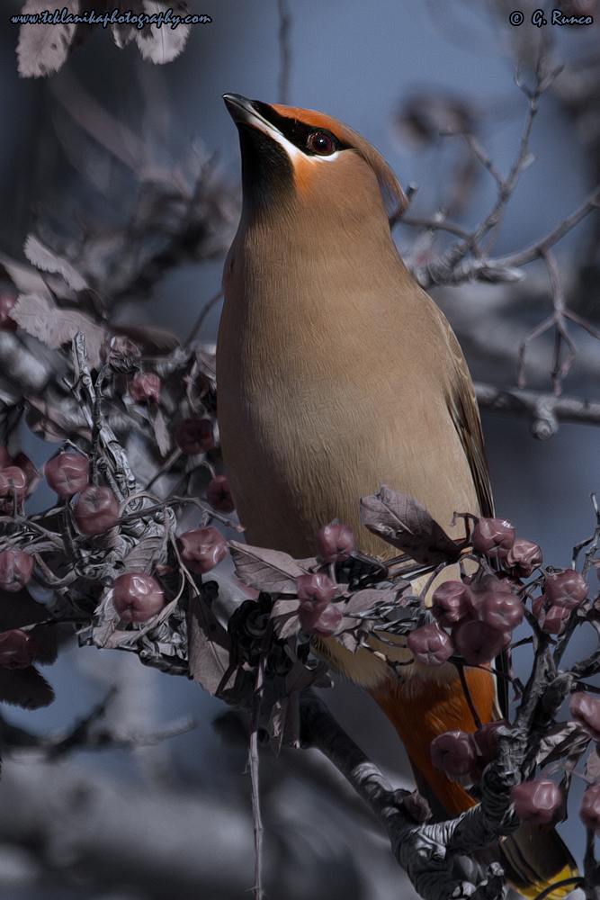 “Bohemian” © Teklanika Photography 2015 Bohemian Waxwing (Bombycilla garrulus) Anchorage, Alaska Canon 7D Canon 100-400mm lens @ 400mm 1/640 sec @ f5.6 iso 200 *creative edit © Teklanika Photography 2015