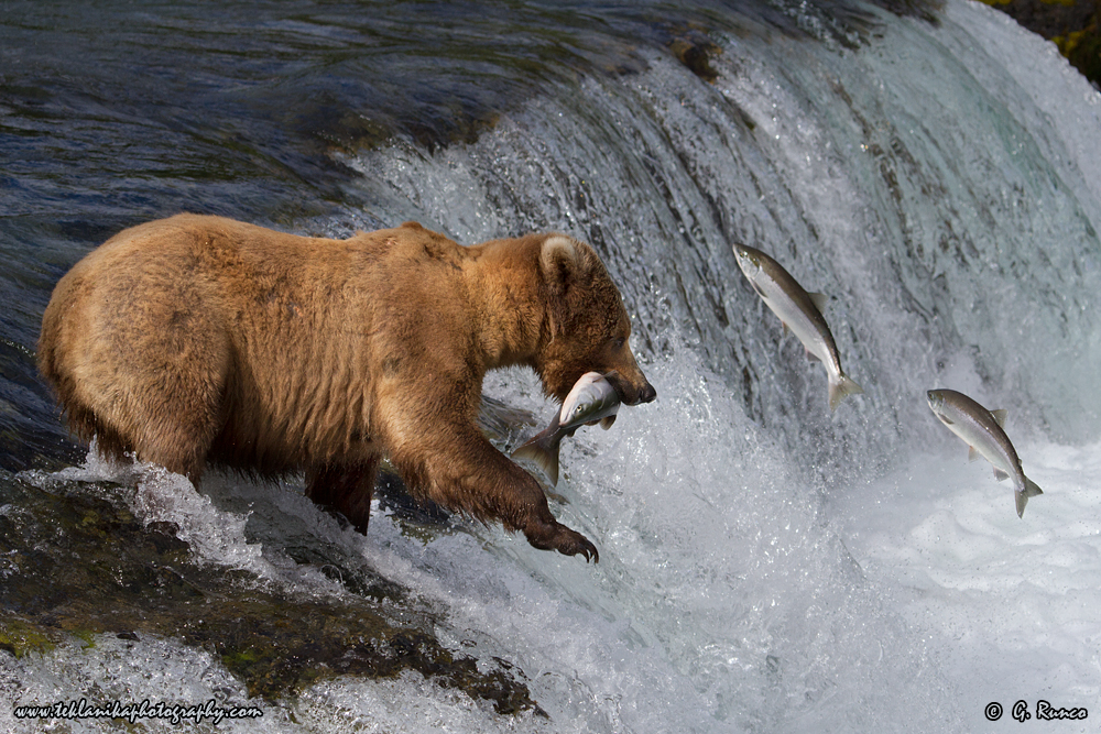 “Fishing the Falls” © Teklanika Photography 2015 Brown Bear (Ursus arctos) and Sockeye Salmon (Oncorhynchus nerka) Katmai National Park, Alaska Canon 7D Canon 100-400mm lens @ 160mm 1/2000 sec @ f5.6 iso 400 © Teklanika Photography 2015