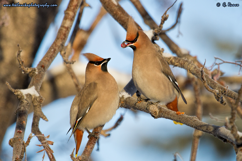 “Waxwings” © Teklanika Photography 2015 Bohemian Waxwings (Bombycilla garrulus) Anchorage, Alaska Canon 7D Canon 100-400mm lens @ 400mm 1/800 sec @ f5.6 iso 500 © Teklanika Photography 2015