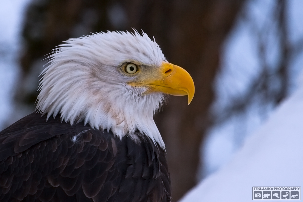 “Winter Eagle” © Teklanika Photography 2015 Bald Eagle (Haliaeetus leucocephalus) Alaska Chilkat Bald Eagle Preserve, Southeast Alaska Canon 7D Canon 100-400mm lens @ 400mm 1/250 sec @ f5.6 iso 500 © Teklanika Photography 2015