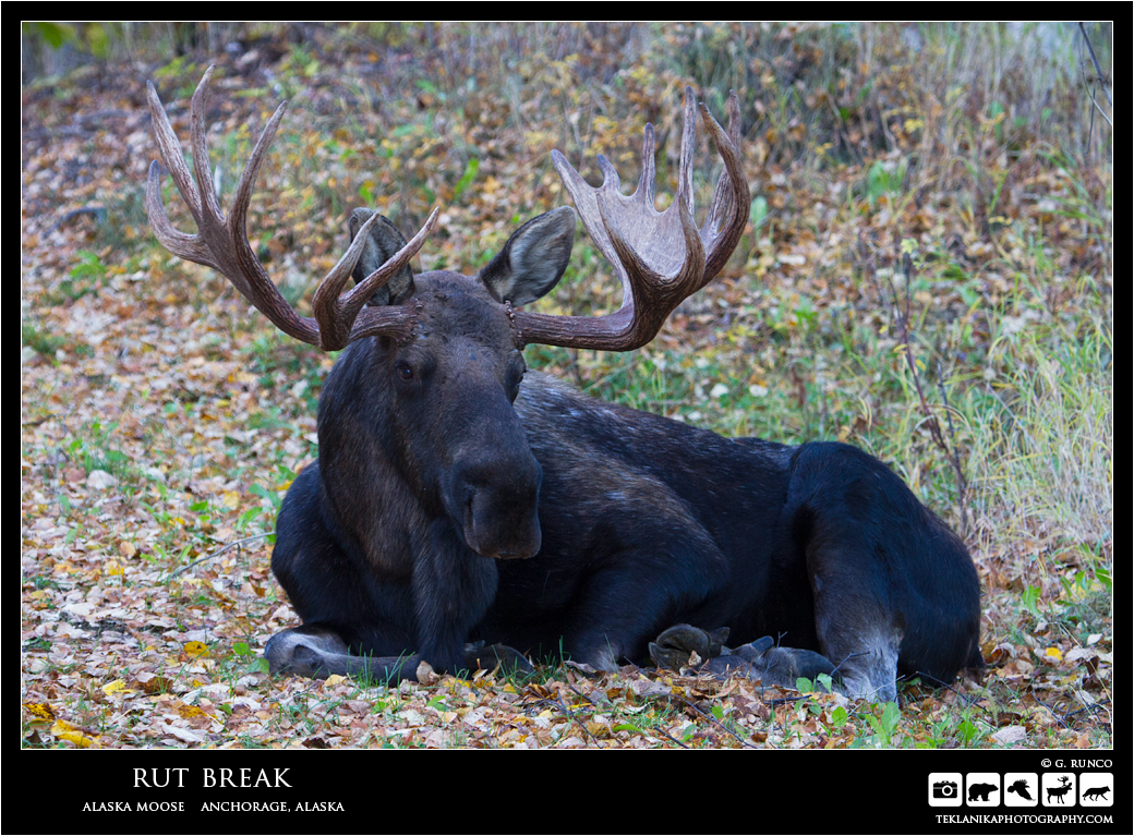 Rut Break Alaska Moose (Alces alces gigas) Anchorage, Alaska Canon 7D Canon 100-400mm lens @ 180mm 1/80 sec @ f5 iso 500 © G. Runco / Teklanika Photography 2016