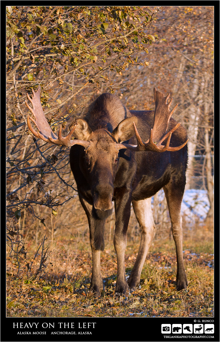 Heavy on the Left Alaska Moose (Alces alces gigas) Anchorage, Alaska Canon 7D Canon 100-400mm lens @ 115mm 1/500 sec @ f4.5 iso 500 © G. Runco / Teklanika Photography 2016