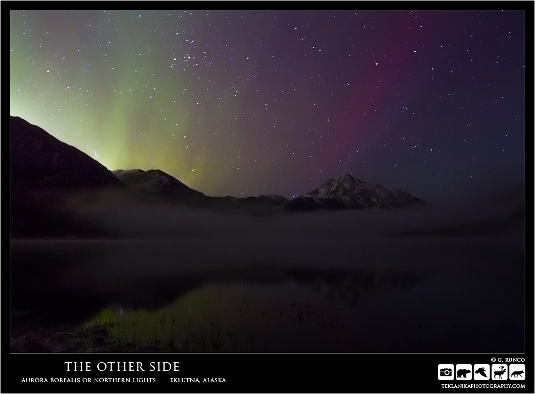 The Other Side Aurora Borealis or Northern Lights Eklutna, Alaska Canon 7D Canon 17-40mm lens @ 17mm 30 sec @ f4 iso 1250 © G. Runco / Teklanika Photography 2016