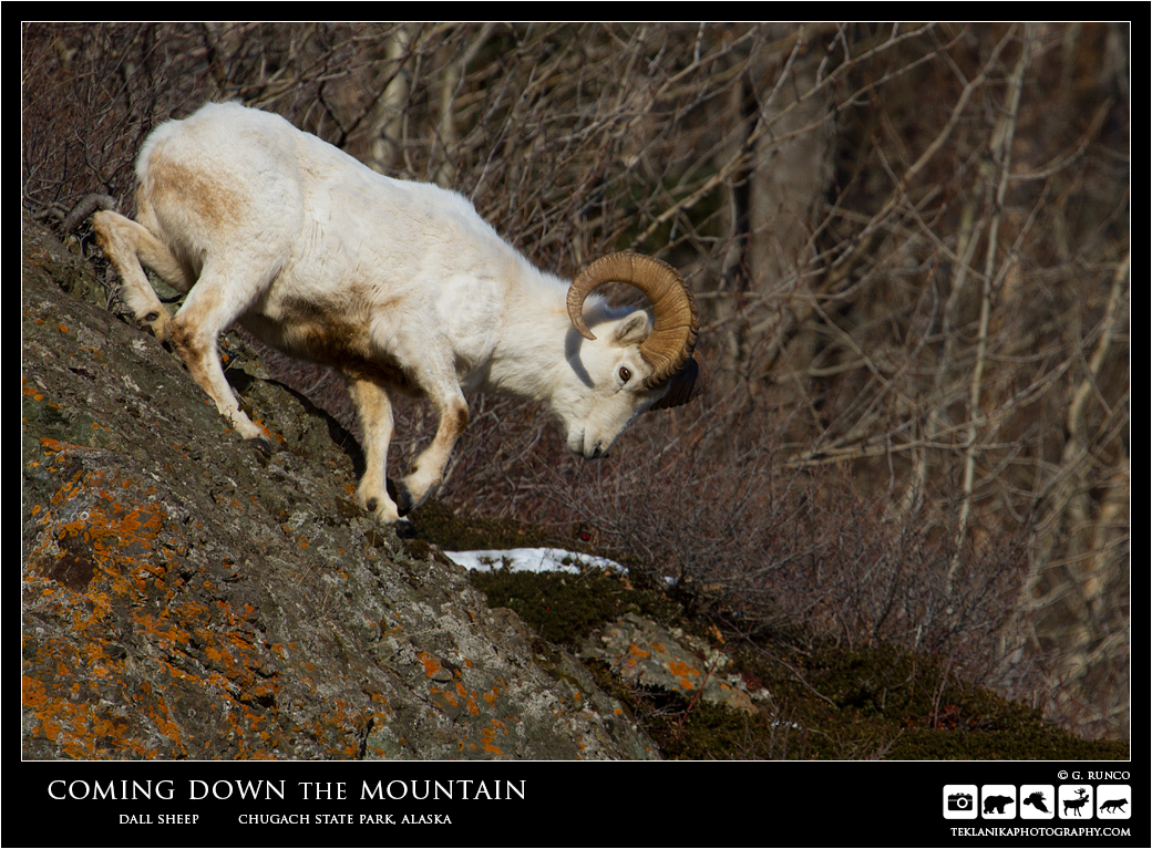 Coming Down the Mountain Dall Sheep (Ovis dalli dalli) Chugach State Park, Alaska Canon 7D w/ Canon 100-400mm lens @ 400mm 1/800 sec @ f8 iso 200 © G. Runco / Teklanika Photography 2017
