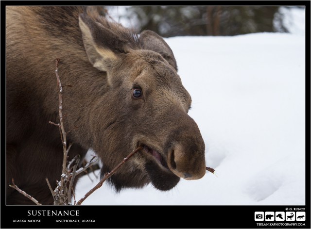 Sustenance Alaska Moose (Alces alces gigas) Anchorage, Alaska Canon 7D w/ Canon 100-400mm lens @ 220mm 1/250 sec @ f5 iso 200 © G. Runco / Teklanika Photography 2017