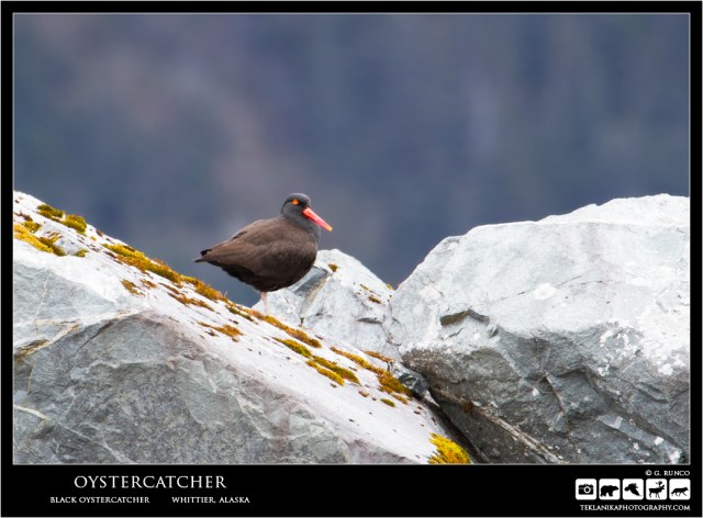 Oystercatcher Black Oystercatcher (Haematopus bachmani) Whittier, Alaska Canon 7D w/ Canon 100-400mm lens @ 400mm 1/250 sec @ f6.3 iso 200 © G. Runco / Teklanika Photography 2017