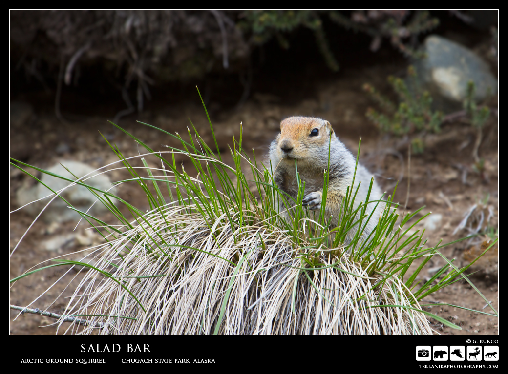 Salad Bar Arctic Ground Squirrel (Spermophilus parryii) Chugach State Park, Alaska Canon 7D w/ Canon 100-400mm lens @ 400mm 1/200 sec @ f6.3 iso 200 © G. Runco / Teklanika Photography 2017