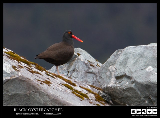 Black Oystercatcher Black Oystercatcher (Haematopus bachmani) Whittier, Alaska Canon 7D w/ Canon 100-400mm lens @ 400mm 1/250 sec @ f6.3 iso 200 © G. Runco / Teklanika Photography 2017