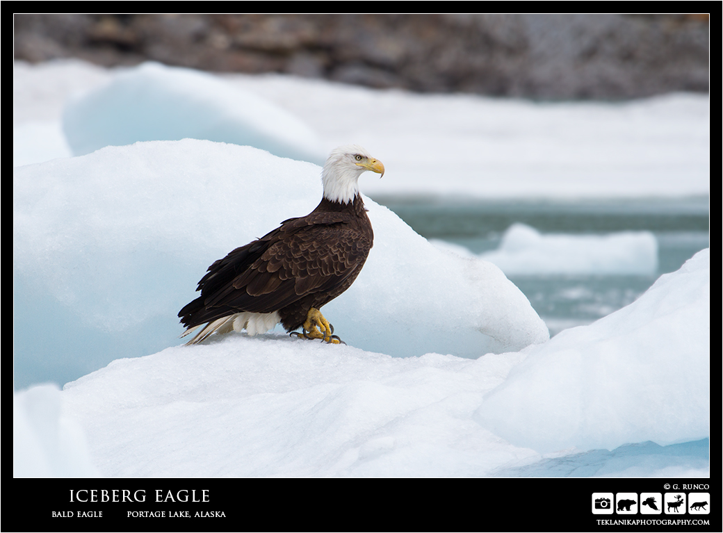 Iceberg Eagle Bald Eagle (Haliaeetus leucocephalus) Portage Lake, Alaska Canon 7D w/ Canon 100-400mm lens @ 400mm 1/800 sec @ f6.3 iso 200 © G. Runco / Teklanika Photography 2017