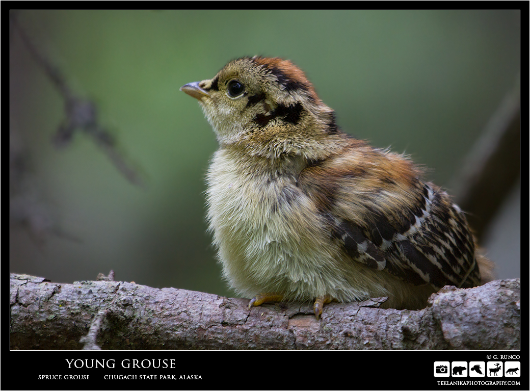 Young Grouse Spruce Grouse (Falcipennis canadensis) Chugach State Park, Alaska Canon 7D w/ Canon 100-400mm lens @ 400mm 1/100 sec @ f5.6 iso 400 © G. Runco / Teklanika Photography 2017
