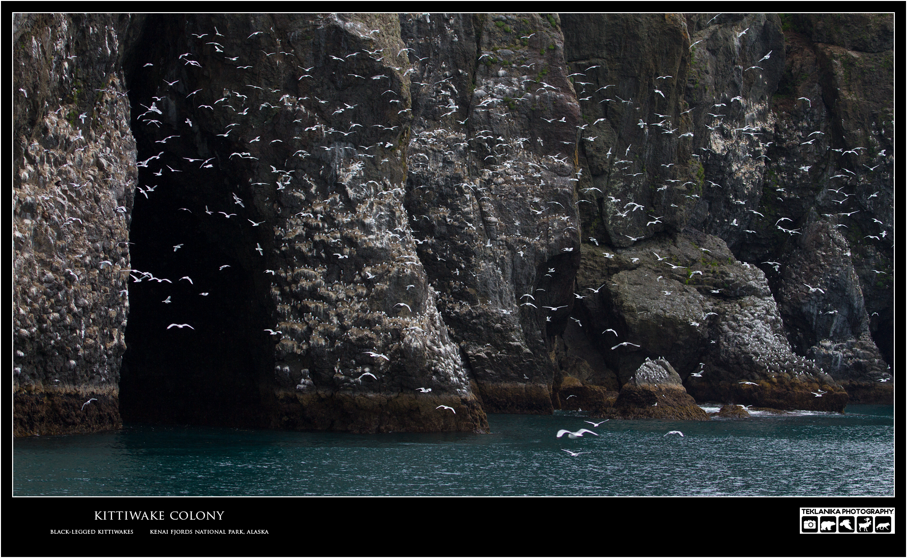 Kittiwake Colony Black-legged Kittiwakes (Rissa tridactyla) Kenai Fjords National Park, Alaska Canon 7D w/ Canon 100-400mm lens @ 100mm 1/800 sec @ f5.6 iso 250 *3-photo stitched panorama © G. Runco / Teklanika Photography 2017