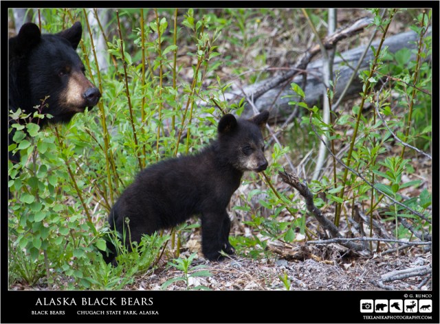 Alaska Black Bears Black Bears (Ursus americanus) Chugach State Park, Alaska Canon 7D w/ Canon 100-400mm lens @ 400mm 1/160 sec @ f5.6 iso 320 © G. Runco / Teklanika Photography 2017