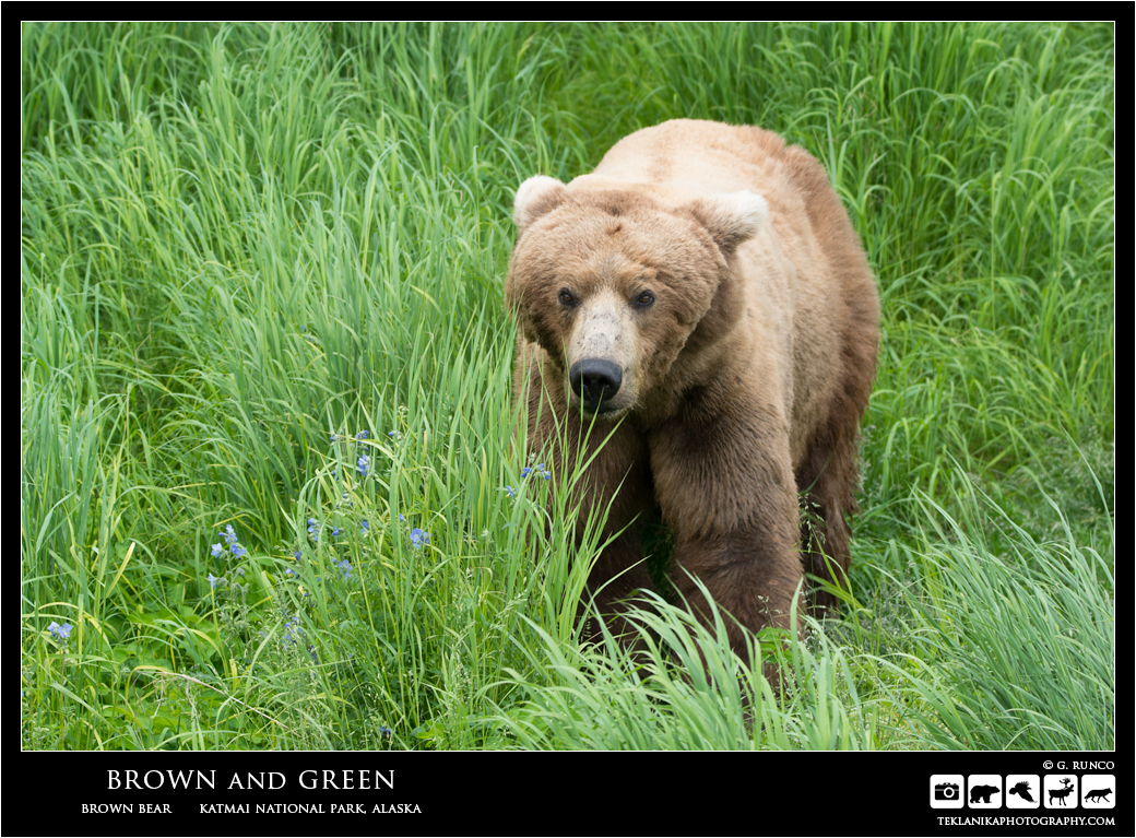 Brown and Green Brown Bear (Ursus arctos) Katmai National Park, Alaska Sony A77 II w/ Tamron 150-600mm lens @ 160mm 1/160 sec @ f5.6 iso 1600 © G. Runco / Teklanika Photography 2017
