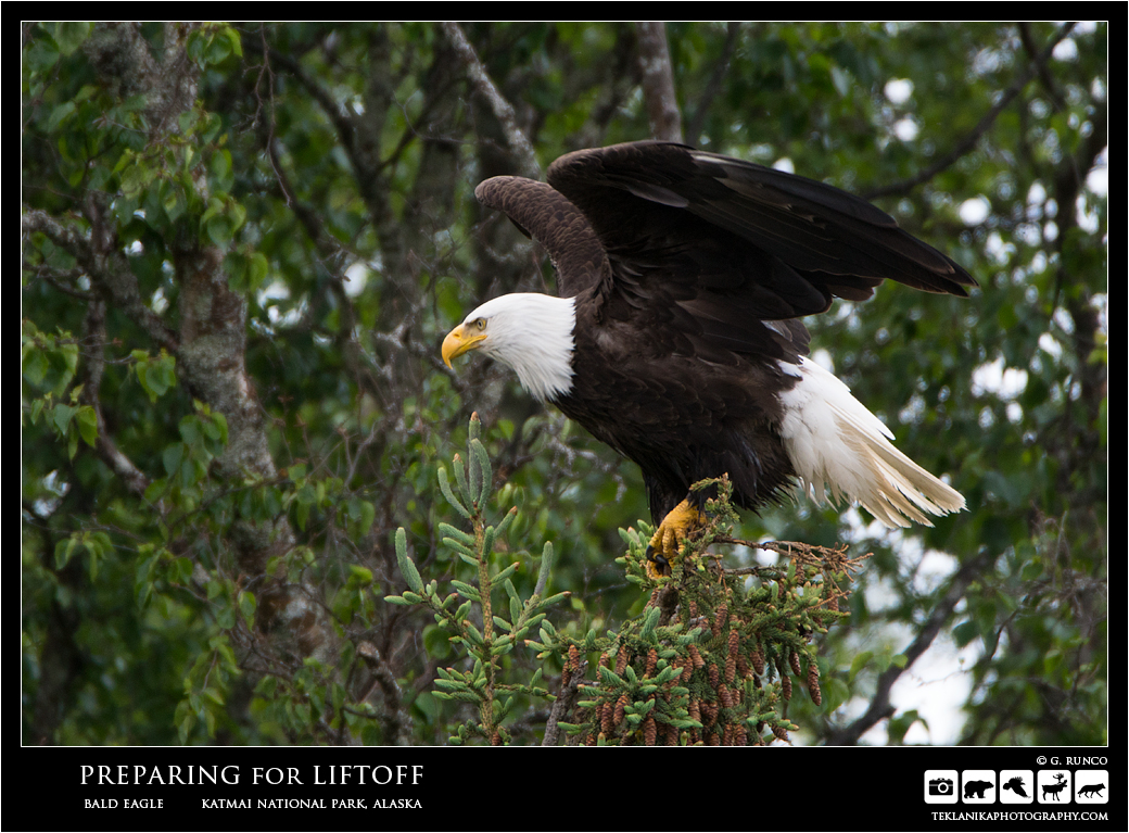 Preparing for Liftoff Bald Eagle (Haliaeetus leucocephalus) Katmai National Park, Alaska Sony A77 II w/ Tamron 150-600mm lens @ 600mm 1/320 sec @ f6.3 iso 500 © G. Runco / Teklanika Photography 2017