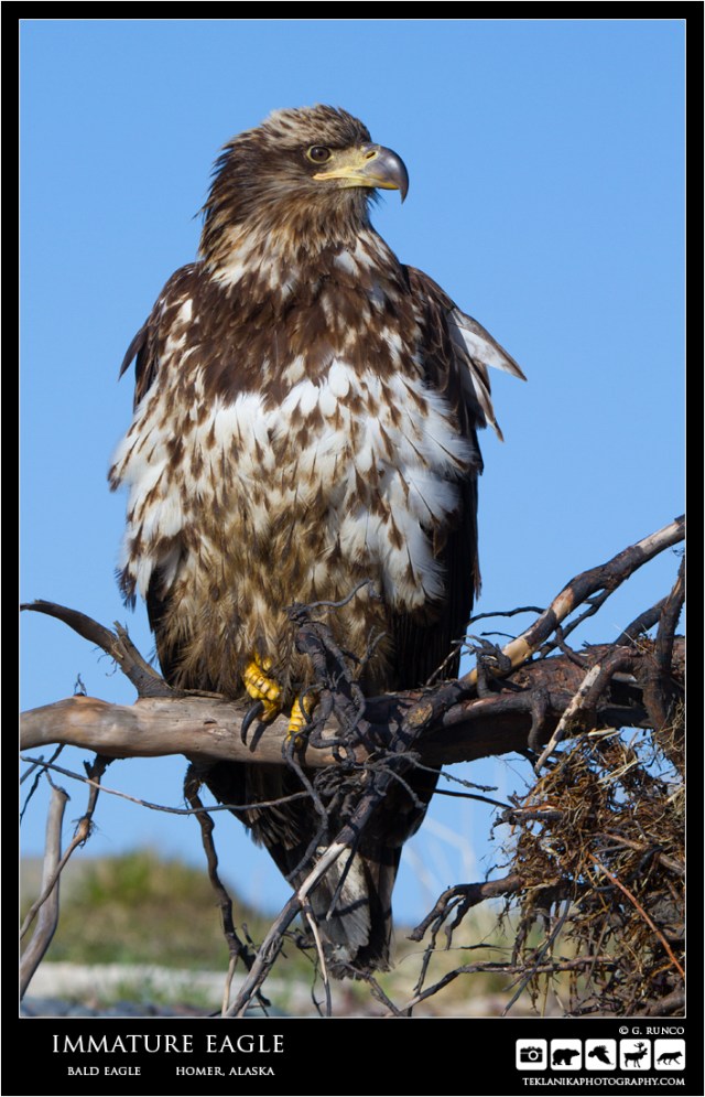Immature Eagle Bald Eagle (Haliaeetus leucocephalus) Homer, Alaska Canon 7D w/ Canon 100-400mm lens @ 250mm 1/1600 sec @ f5 iso 200 © G. Runco / Teklanika Photography 2017