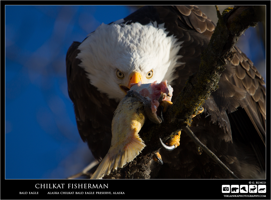 Chilkat Fisherman Bald Eagle (Haliaeetus leucocephalus) Alaska Chilkat Bald Eagle Preserve, Alaska Canon 7D w/ Canon 100-400mm lens @ 380mm 1/800 sec @ f5.6 iso 200 © G. Runco / Teklanika Photography 2017