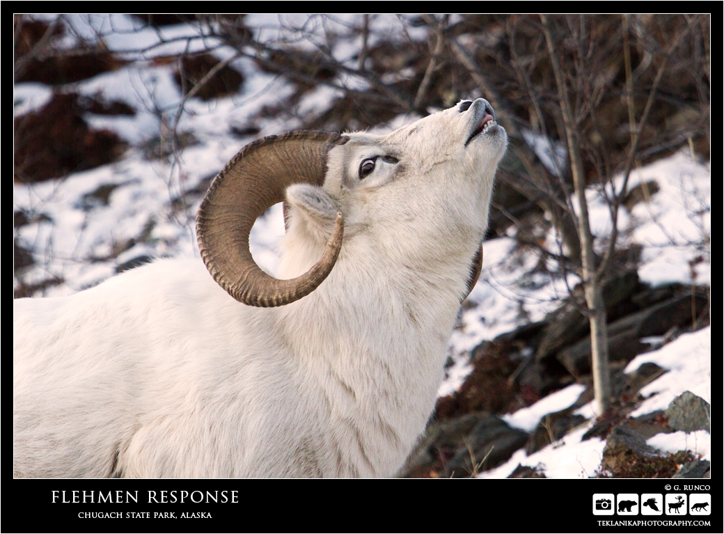 Flehmen Response Dall Sheep (Ovis dalli dalli) Chugach State Park, Alaska Canon 7D w/ Canon 100-400mm lens @ 330mm 1/320 sec @ f5.6 iso 500 © G. Runco / Teklanika Photography 2017