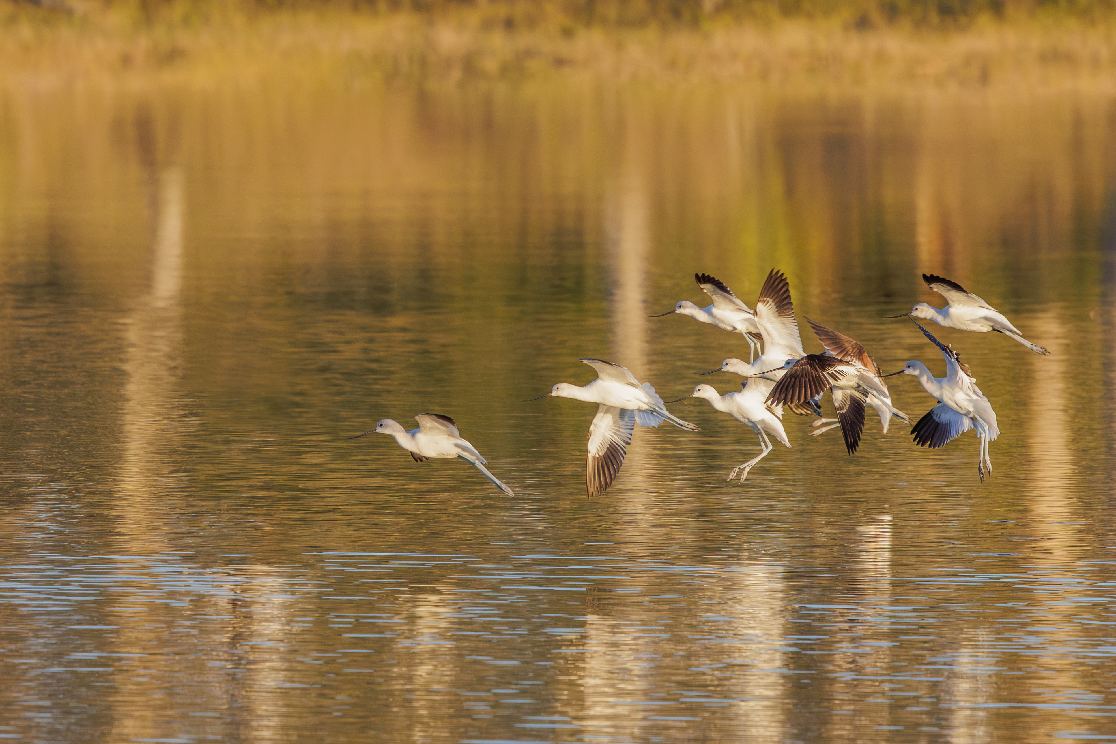 American Avocets forage in shallow fresh and saltwater wetlands, salt ponds, impoundments, and evaporation ponds.